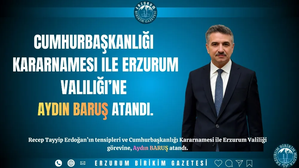 Recep Tayyip Erdoğan’ın tensipleri ve Cumhurbaşkanlığı Kararnamesi ile Erzurum Valiliği görevine, Aydın Baruş atandı.