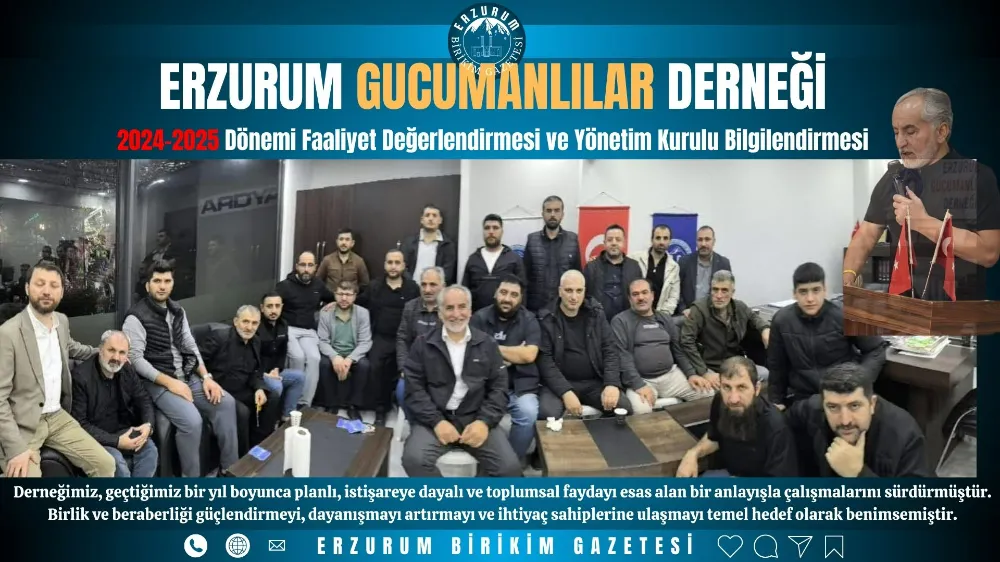 Erzurum Gucumanlılar Derneği’nin geride bıraktığı bir yıllık döneme ait faaliyet değerlendirmesi ile yönetim kurulu bilgileri kamuoyunun bilgisine saygıyla sunulmuştur.