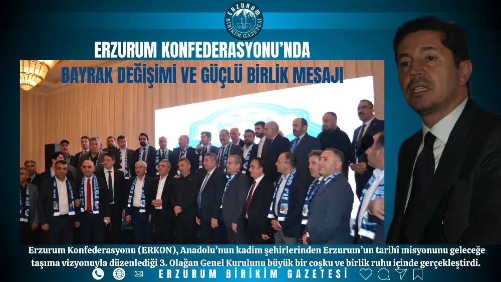 📌 Erzurum Konfederasyonu (ERKON), Anadolu’nun kadim şehirlerinden Erzurum’un tarihî misyonunu geleceğe taşıma vizyonuyla düzenlediği 3. Olağan Genel Kurulunu büyük bir coşku ve birlik ruhu içinde gerçekleştirdi.